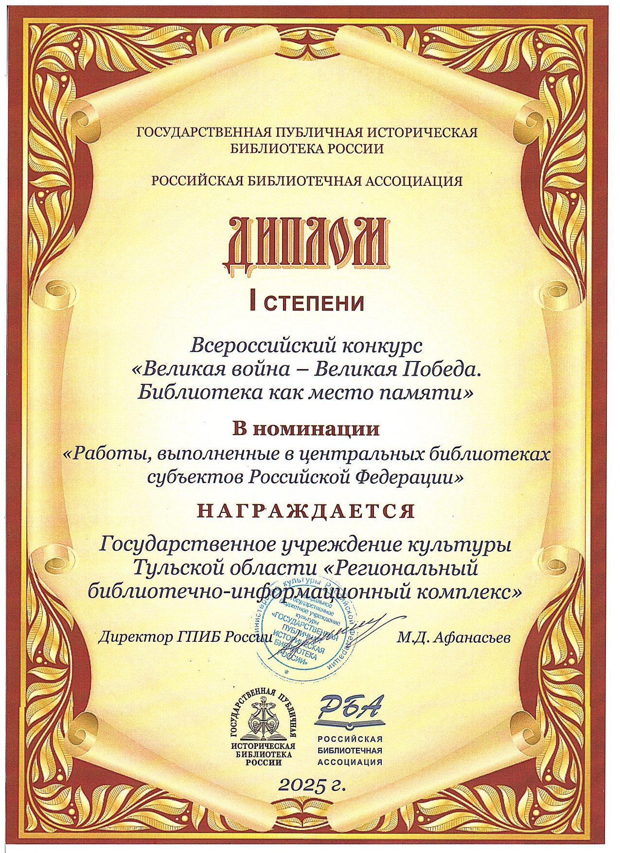 185 ЛЕТ ТУЛЬСКОЙ ГУБЕРНСКОЙ ПУБЛИЧНОЙ БИБЛИОТЕКЕ